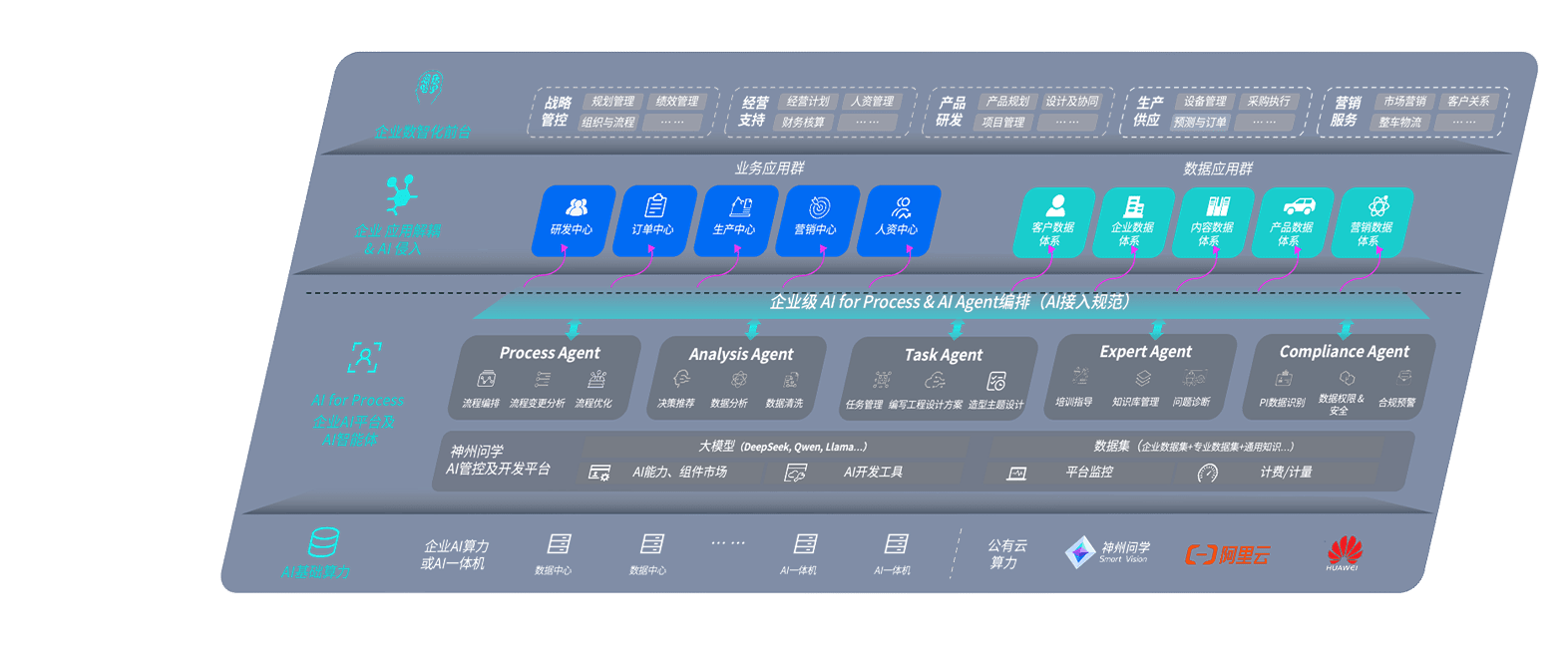 端到端的一站式AI工作空间深度融合了从企业战略规划到日常经营的全流程业务板块,,,,定向解决车企内部领域多、、部门多、、、、链条长、、场景碎片化等难题,,,支持车企快速构建以AI为核心的生产力写作体系,,,实现任务执行与AI能力的无缝集成与交互